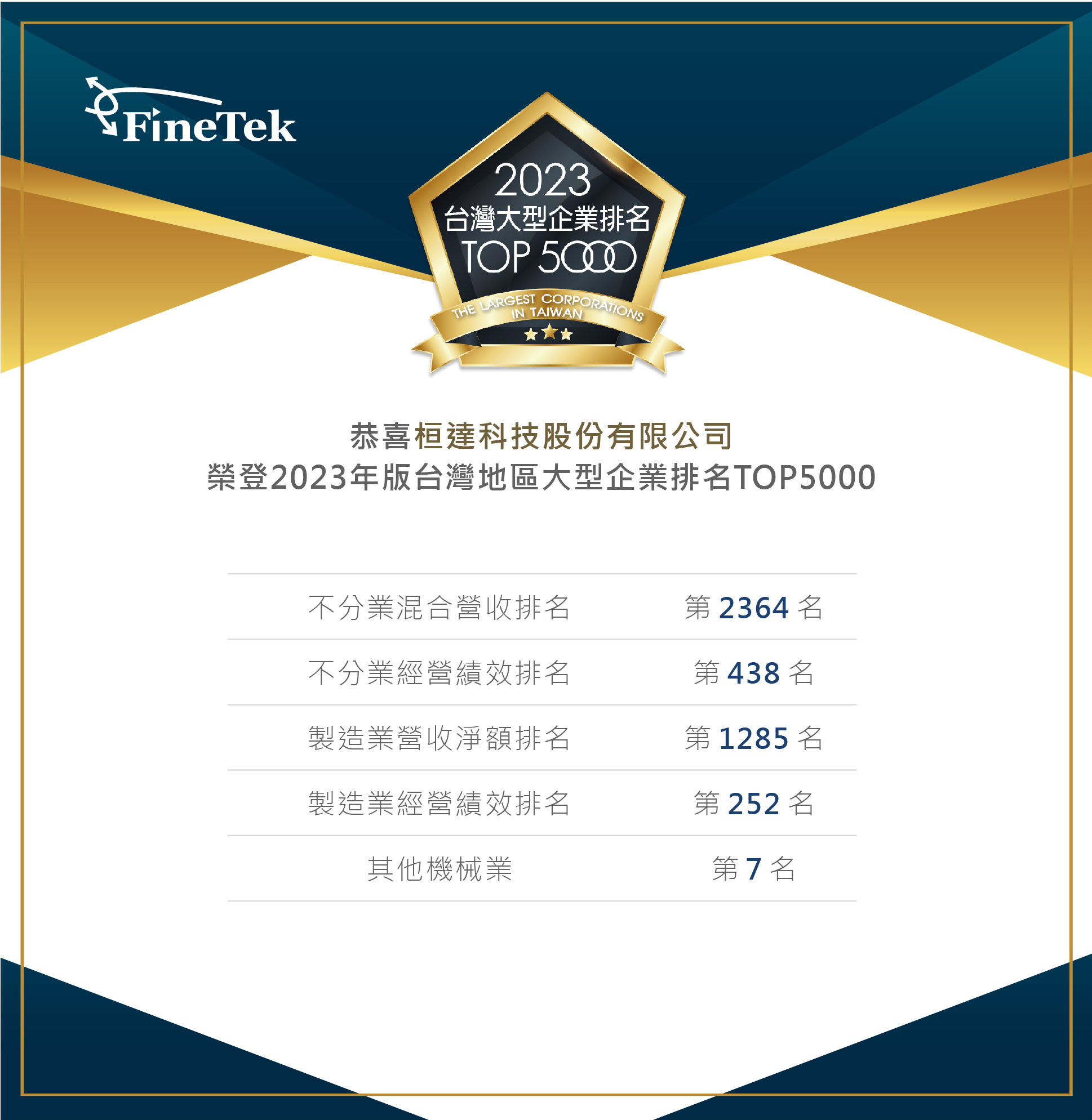 桓達再度榮登CRIF中華徵信所「2023年版台灣地區大型企業排名TOP5000」公民營企業混合排行榜,感謝各界給予肯定,桓達會繼續努力。
